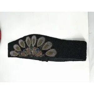 Vintage 1980's Black Multi Colored Hand Beaded Belt Snap Closure 29 black base