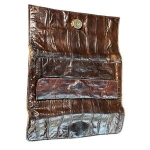 Vintage Genuine Eel Skin Wallet Brown 7”x 4” Classic Soft Leather