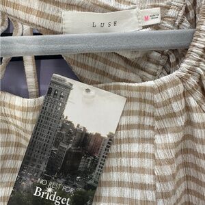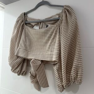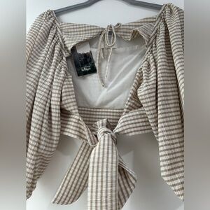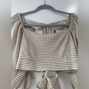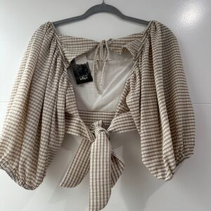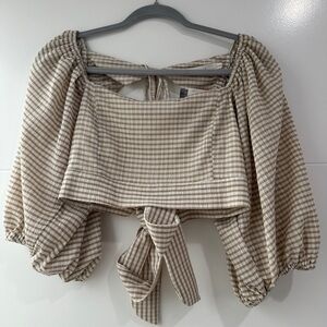 Lush Tan & White Gingham Puff Sleeve Crop Top | NWT Size M