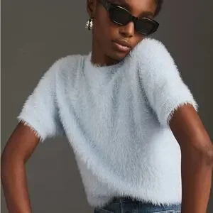 Anthropologie Pilcro Eyelash Short-Sleeve Jumper Crop Cropped Sweater S Small