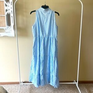 Elevate your wardrobe with this chic blue striped midi dress. Perfect for any occasion, its sleeveless design offers a blend of comfort and style.