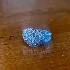 Gorgeous retired Judith Ripka Sterling Silver Ring with CZ encrusted Heart Shaped face.