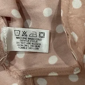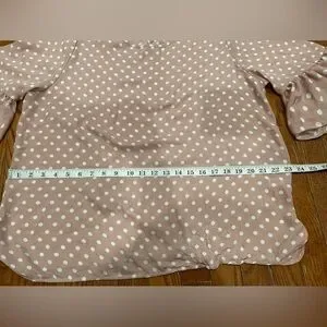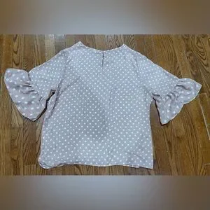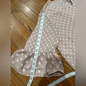 Elegant blouse with ruffle sleeves. Pink with white polka dots. Ideal for casual outings.