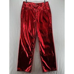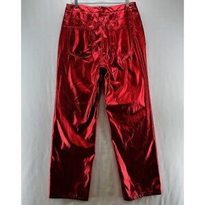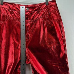 AFRM Pants Womens Sz 30 Bailyn Metallic Jeans High Waist Straight Leg Red