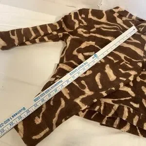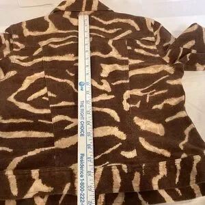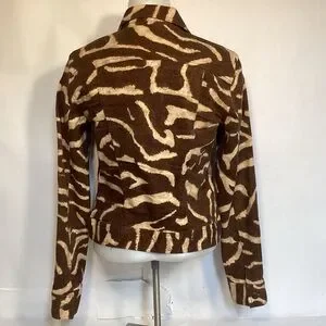 This Ralph Lauren LRL Lauren Jean Company soft denim jean jacket features a captivating animal print in rich brown and cream tones, offering a chic and modern look. The cropped design and structured silhouette make it a versatile piece for various occasions. Crafted with attention to detail, this jacket is a stylish addition to any wardrobe. Women’s size medium please see measurements