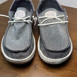 Hey Dude Womens Wendy Metallic Silver Sparkle Slip-on Shoes, Charcoal sz 6