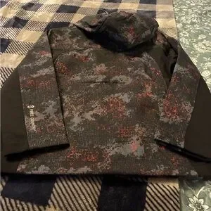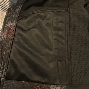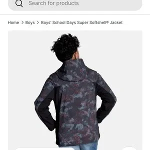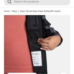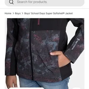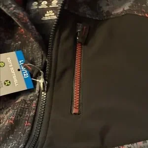 Stylish and durable boys' jacket. Features a black and orange pattern. Ideal for outdoor activities.3- Layer water & wind resistance fabric. 4- Way stretch. Cozy warm brick fleece lining. Chin guard protection from zipper. Safety reflective logo print.