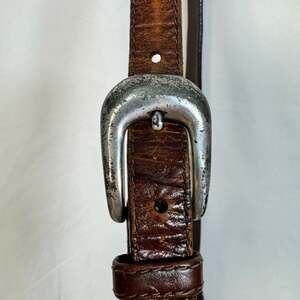 Condition: Good vintage condition with authentic character. Shows some signs of wear on the leather finish and hardware patina, which is common for authentic 80s/90s Brighton pieces. No major structural flaws.