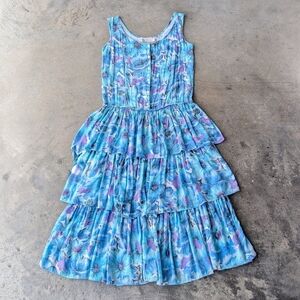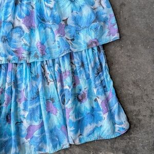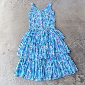 Vintage Blue Floral Sleeveless Tiered Midi Dress