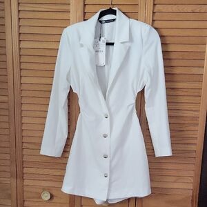 ZARA White NWT Cut Out Sides Tailored Blazer Dress Romper Micro Mini Size Small