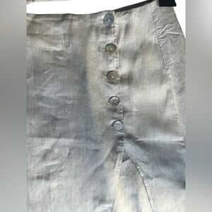Crisp woven linen shapes this high-waisted, summery midi skirt, featuring iridescent side buttons and a flirty slit.
