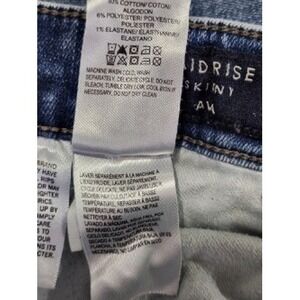 Lucky Brand Ava Mid Rise Skinny Ankle jeans in a medium wash blue denim. These stylish jeans feature a classic five-pocket design with a zip fly and button closure. The denim has a slight stretch for comfort and includes subtle whiskering and light distressing for a lived-in look. Finished with a raw, frayed hem at the ankle for a modern touch.