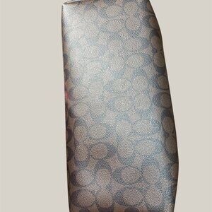 COACH CLASSIC KISSING C'S COATED CANVAS TOTE IN CHOCOLATE BROWN - EXC USED CONDITION - SHE IS 13 WIDE ON BOTTOM - 16 ON TOP - 11 TALL AND 5 INCHES WIDETH - SHE HOLDS A LOT! LARGE ZIP POCKET ON FRONT WITH COACH TAG - GOLDTONE HARDWARE