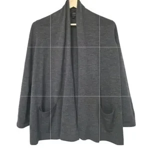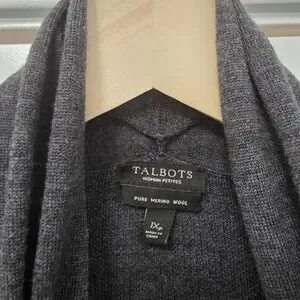 Talbots Womens Petite Plus 1XP 1X Cardigan Sweater Open 100% Merino Wool Gray