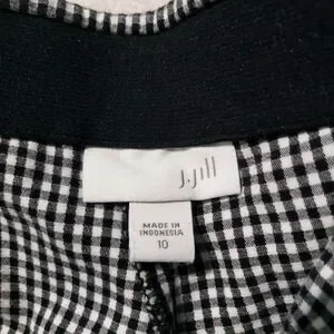 J.Jill Pull-on Pants Women's Size 10 Black White Gingham Straight Leg Stretch