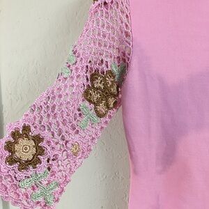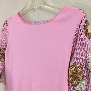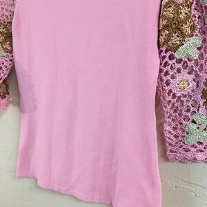 Vintage Joseph A Floral Crochet 3/4 Sleeve Blouse Small Pink Stretch