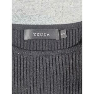Zesica Womens Black White Striped Ribbed Knit Long Sleeve Top Small