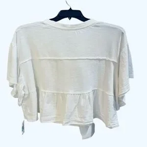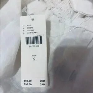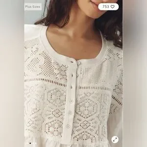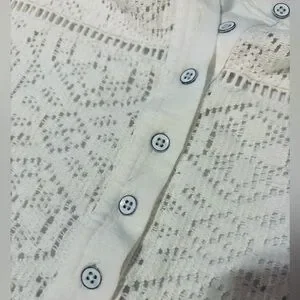 Elegant white top with intricate lace detailing. Features buttoned front and relaxed fit. Perfect for casual outings. New with tags