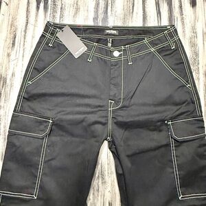 Brand new with tags True Religion Classic black cargo pants with multiple pockets and “true religion” embroidery on back pockets. Nice lightweight fabric. Size 34” men’s. $169- regular retail price.