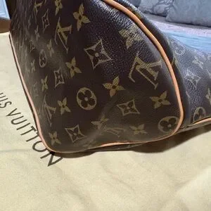 This one is practically brand new! Plus, it is the older style with the front zipper pockets that everyone is after! The canvas is flawless with no corner rubs or blemishes, vachetta is light, strap is comfortable and in excellent shape, interior looks unused, hardware is still gold and shiny with the interior zipper pull still having the plastic protector, and no foul odors.