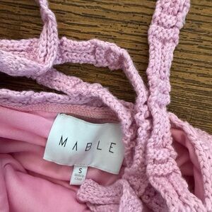 Chic knit top in soft pink. Features delicate crochet design. Ideal for casual wear.