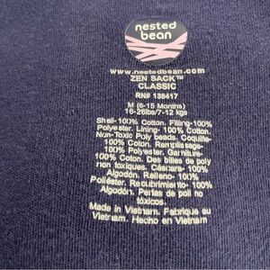 Very good preowned condition. Navy Blue Zen Classic. A gently weighted baby sleep sack by Nested Bean. Weighted Cuddle Pad™: The distinctive oval-shaped patch on the chest contains a light weight that mimics the pressure of a caregiver's hand to help soothe babies.