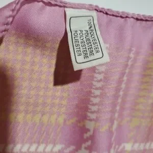This vintage scarf features a lavender and yellow houndstooth pattern on a silk-like polyester material, measuring 20" square. The accessory is perfect for everyday wear, adding a pop of color with its purple and yellow hues. Made for women, this original vintage piece exudes a stylish houndstooth look that is both classic and trendy.