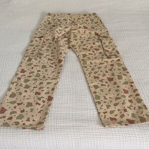 Stylish cargo pants with a camouflage pattern. Features multiple pockets for convenience. Perfect for casual outings.