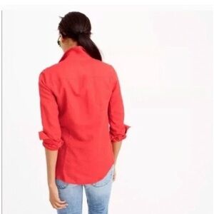 J. Crew Coral Linen Blend Long Sleeve Perfect Shirt size 8