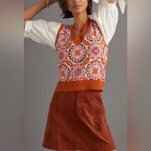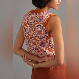 Chic rust knit top from Maeve by Anthropologie. Ideal for casual wear. Great for layering or to wear as sleeveless sweater alone.