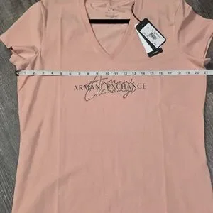 Elevate your style with this chic pink V-neck top from Armani Exchange. Perfect for any occasion, this top combines comfort and elegance.