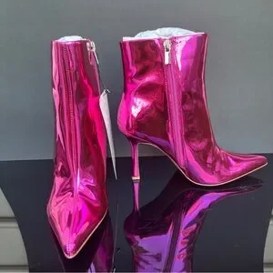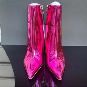 The Drop Metallic Hot Pink Y2K Ankle Boots Size 7