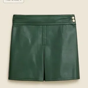 J. Crew Center-pleat mini skirt in faux leather army green 10 NWT