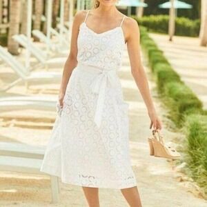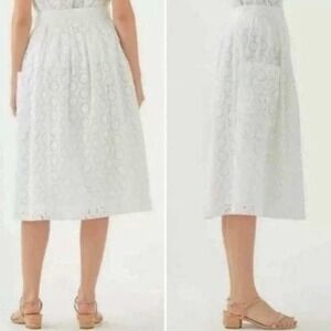 Lilly Pulitzer Pier Midi Skirt 4 White Eyelet Cotton Pockets Belted Resortwear