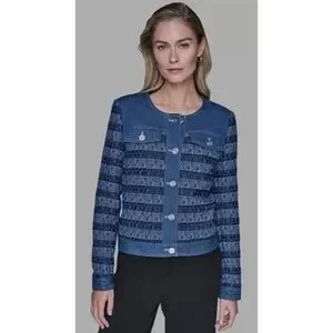 KARL LAGERFELD PARIS Denim Tweed Crewneck Jacket NWT XL