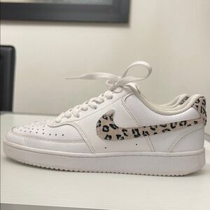 NIKE COURT VISION LOW LEOPARD SWOOSH LEATHER SNEAKERS WOMENS SIZE 8 CONDITION PRE-OWNED PLEASE!!! ZOOM CHECK PHOTOS FOR DETAILS SOLD AS IS THANKS…PRICE FIRM