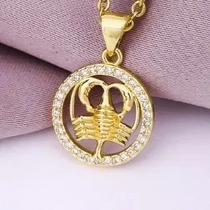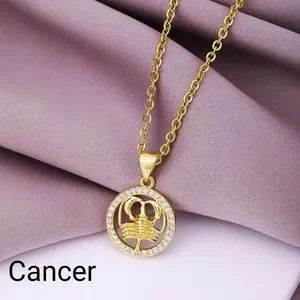 This gold tone necklace features a Cancer pendant with zircon accents, making it the perfect accessory for astrology lovers. Add a touch of celestial charm to your outfit with this piece.