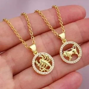 Cancer Zodiac Necklace Inlaid Zircon Gold Plated Stainless Steel