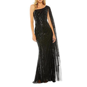 New with tag $898 Mac Duggal Asymmetric Sequined Black Gown Formal Wedding Dress Size 12