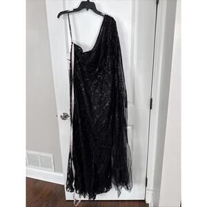 $898 Mac Duggal Asymmetric Sequined Black Gown Formal Wedding Dress Size 12