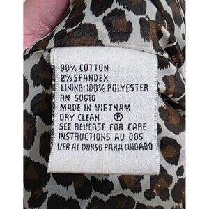 This early-2000s Le Suit blazer blends structure and attitude with its utility-inspired design, featuring four functional pockets, a waist-defining belt, and a standout leopard-print satin lining. The cotton-spandex outer fabric gives it a smooth, tailored feel with a bit of stretch, while the classic black color makes it easy to dress up or down. A polished, confident piece perfect for office looks, night-out styling, or edgy streetwear layering.
