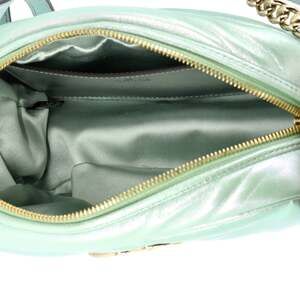 Elevate your style with the Gucci GG Marmont Shoulder Bag in Chevron Iridescent Leather Small. Crafted with precision and attention to detail, this bag exudes luxury and sophistication. The iconic GG logo and chevron pattern add a touch of elegance, while the iridescent leather creates a mesmerizing effect that catches the eye. Perfect for day or night, this versatile bag is a must-have accessory for any fashion-forward individual. Add a touch of glamour to your outfit with the Gucci GG Marmont Shoulder Bag.
