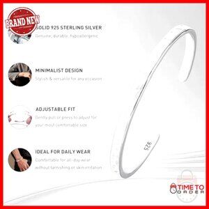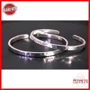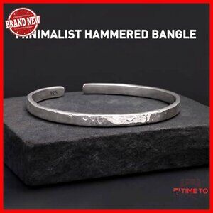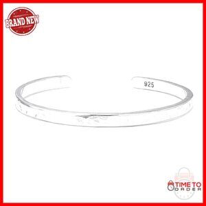 925 Sterling Silver Hammered Cuff Bangle Bracelet Minimalist Jewelry