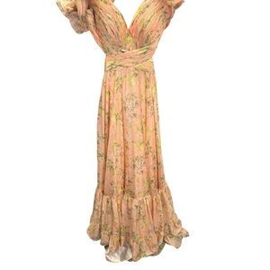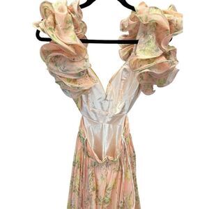 Mac Duggal Pink Floral Ruffle Maxi Gown Size 2 | Romantic Tulle Evening Dress