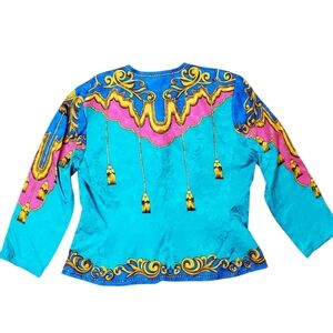tags: 80s, vintage, silk, bright, blazer, jacket, baroque, retro