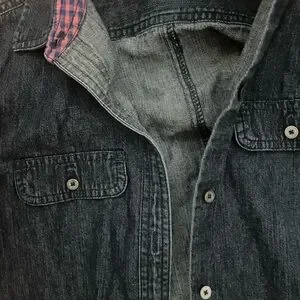 Classic Talbots denim shirt dress in a timeless mid-wash blue.