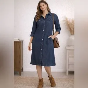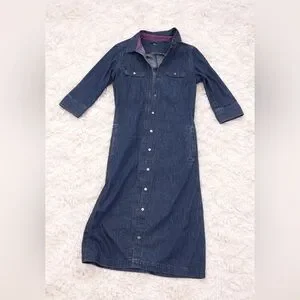 Talbots Button Down Denim Midi Shirt Dress Classic Casual