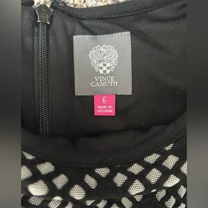 Vince Camuto Elegant black midi dress with square mesh cutout design size 6