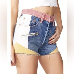 Levi's 501 Super Mario Denim Jean Shorts Women's color block fray hem Size 31