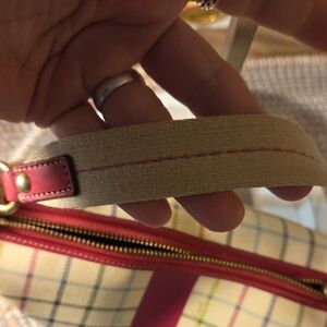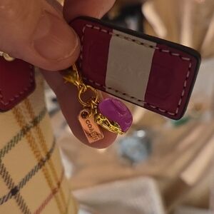 Stylish Coach 10x6 bag with a cream and red checkered pattern. Perfect for any occasion.